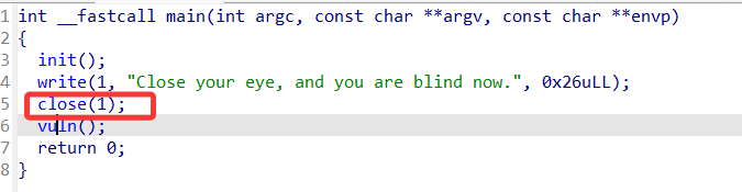 s(payload) rl(b'Close your eye, and you are blind now.') write= u64(p.recv(8).rjust(8,b'\x00')) print(f'write====',hex(write))