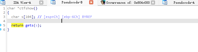 s为0x6c转换10进制为108再+4覆盖栈底为112,除以7得16只需要输入16个I即可进行栈溢出,剩余16的大小