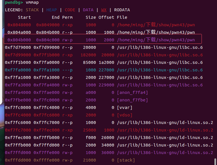 gdb vmmap可以查看到程序有一段可写的部分,可以使用这一部分去写入/bin/sh