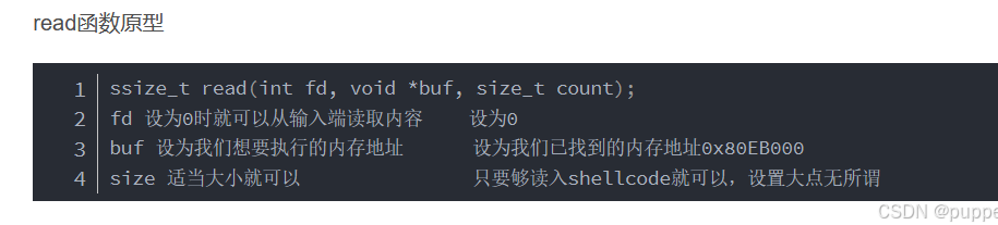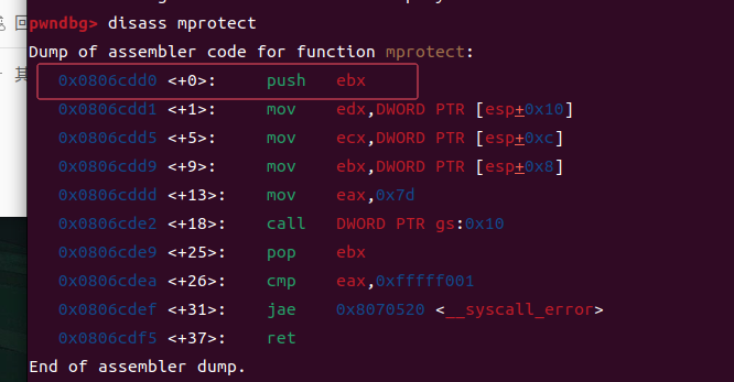 所以目前的解题思路:使用mprotect函数修改一段内存地址为可执行,在使用read函数在修改后的地址写入shellcode在调用