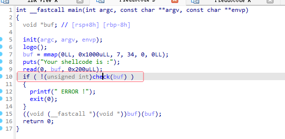 程序18行是输入shellcode,20行是输入执行的shellcode的地址