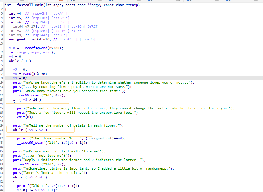 p.sendlineafter(b'prepared this time?', b'16') for i in range(15): p.sendlineafter(b'flower number', b'0')