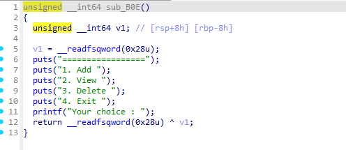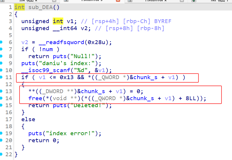 delete 函数中,if 检测 chunk_s+v1 实际上并不是inuse 的值,所以这边是一个假判断